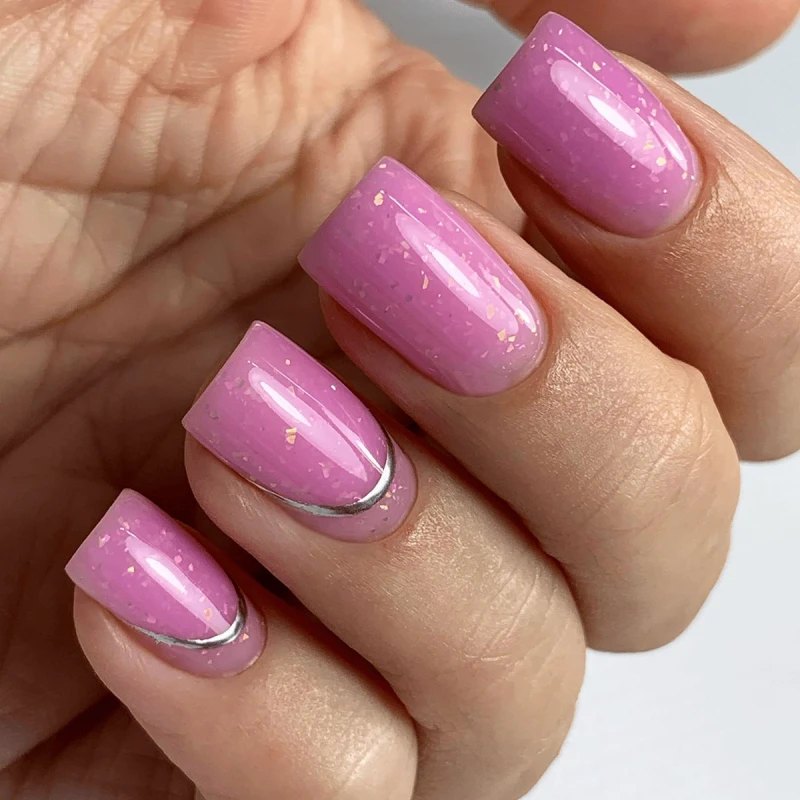 UV/LED Builder Gel PNB, Radiant Orchid – nasycony różowy kolor żelu z drobinkami yuki. Dzięki temu kolorowi żelu Twój manicure błyskawicznie przyciągnie zazdrosne spojrzenia, a Ty poczujesz się jak właścicielka wszechświata. Ten odcień przypomina orchideę, owiniętą złotym blaskiem, która dotyka Twoje paznokcie. Porzuć swoje wątpliwości i wiedz, że nadszedł czas Twojej gwiazdy!