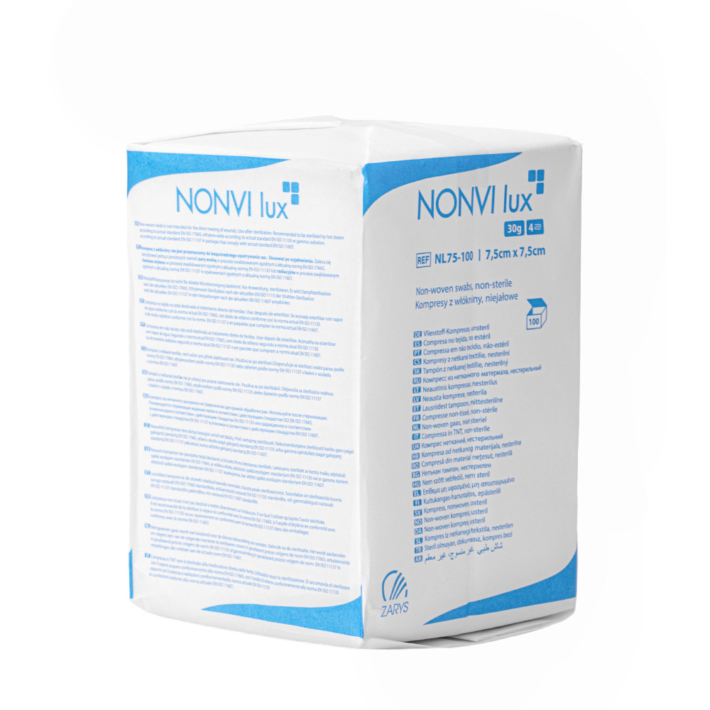 Kompres włókninowy niejałowy Nonvi lux wykonany z włókniny.