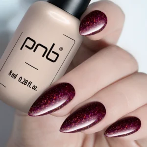 Lakier hybrydowy PNB 374 Сrazy Bordeaux – efektowny bordowy kolor lakieru hybrydowego, gęsto nasycony odblaskowymi drobinkami. Ten lakier hybrydowy przypomina kamień szlachetny. Taki odcień stanie się ulubieńcem dziewczyn, które cenią sobie królewski efekt. Odcień 374 nadaje się na wieczorne wyjście, uroczyste wydarzenie lub codzienny wygląd.
