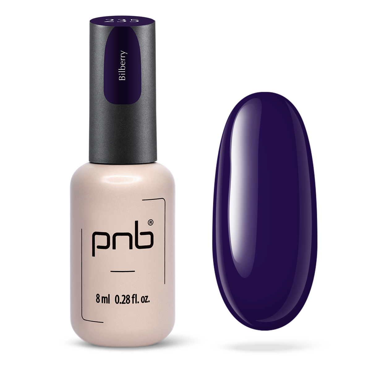Kolor borówkowy – bogaty i głęboki jagodowy fiolet. Lakier hybrydowy 235 w kolorze „Bilberry” często używany do zdobień paznokci jako alternatywa dla czerni. Produkt wyróżnia się gęstą konsystencją, nasyconą pigmentacją, lekkim połyskiem. Nakładamy na przygotowaną płytkę paznokcia w 1-2 cienkich warstwach. Polimeryzacja w lampach LED lub UV przez 60 sekund.