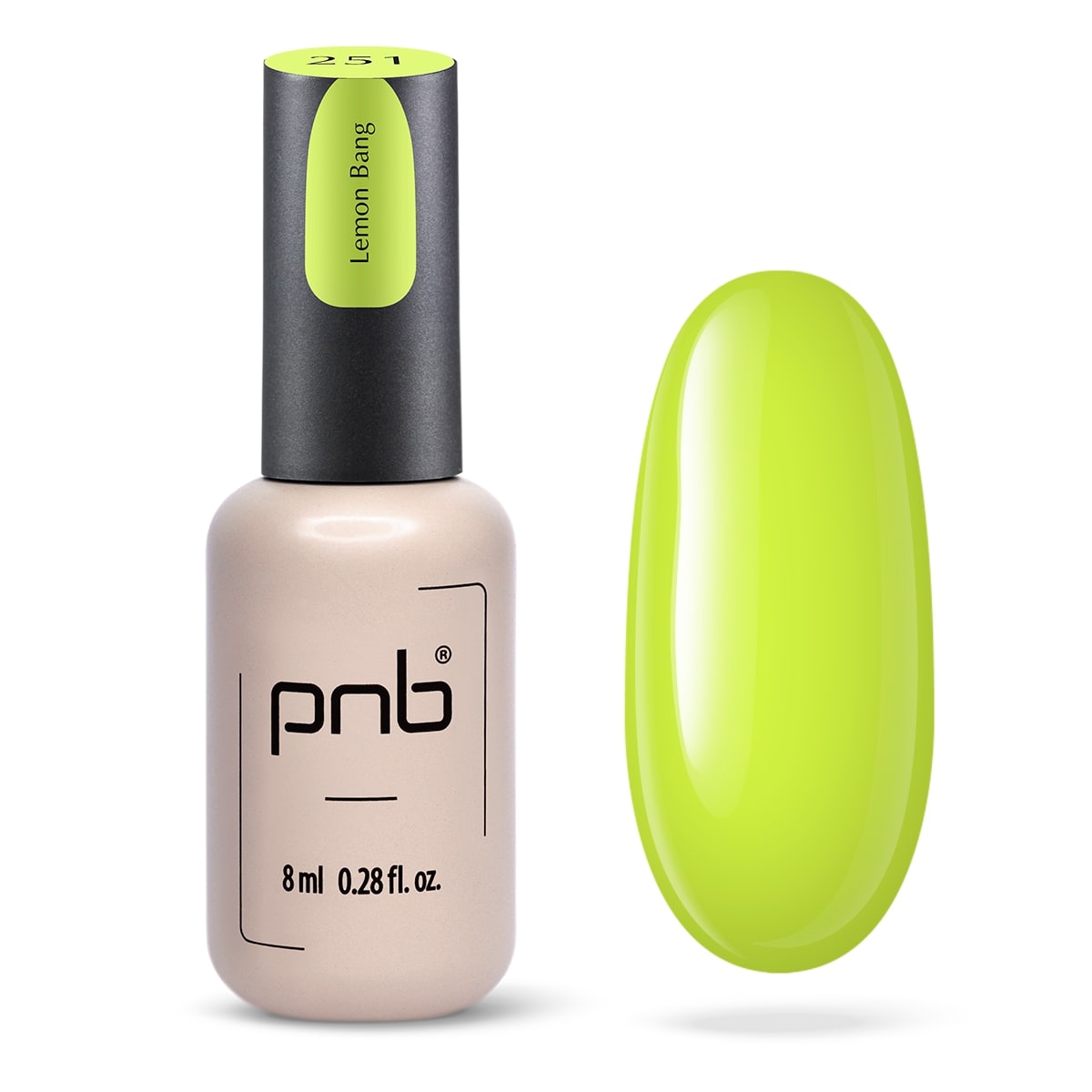 Lakier hybrydowy Lemon Bang z neonowej kolekcji PNB to jasnożółty cytrynowy kolor, który energetyzuje lato. Niesamowicie pozytywny, „smaczny” wygląd na krótkich i długich paznokciach.