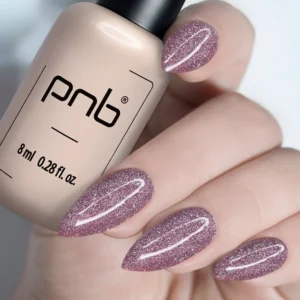 Neutralna baza optycznie wysmukla dłonie, a subtelny błysk dodaje stylizacji nowoczesnego charakteru. To idealny wybór dla fanek estetyki quiet luxury.