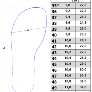 Niezależnie od tego, czy masz małą, czy bardzo dużą stopę — ten model jest dla Ciebie! Dostępny w rozmiarach 36–48.