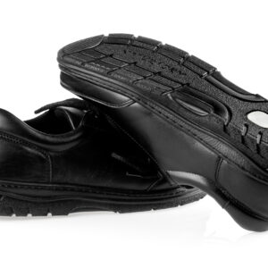Stabilna, szeroka podeszwa wzmacnia działanie wkładek korekcyjnych, a odpowiednio sztywny zapiętek pomaga ustawić stopę w prawidłowej pozycji, ograniczając nadmierną pronację lub supinację. Wykorzystanie naturalnej skóry oraz miękkiej, piankowanej podszewki z mikrofibry zapewnia stopom optymalne warunki, komfort i higienę przez cały dzień.