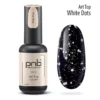 Art Top PNB, Silver Dots niczym za dotknięciem czarodziejskiej różdżki, dzięki rozproszeniu błyszczących drobinek, zamieni manicure w niesamowitą perfekcję. Użyj tego topu, aby uzyskać pełne krycie lub efekt ombre i brokatu. Przygotuj się na mnóstwo entuzjastycznych recenzji od swoich klientów.